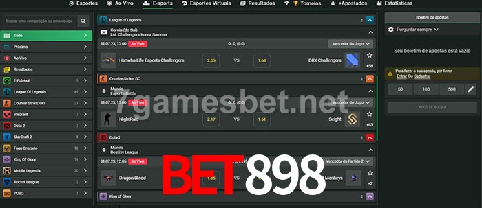 O Bet898 oferece uma grande seleção de opções de apostas em e-sports com probabilidades competitivas